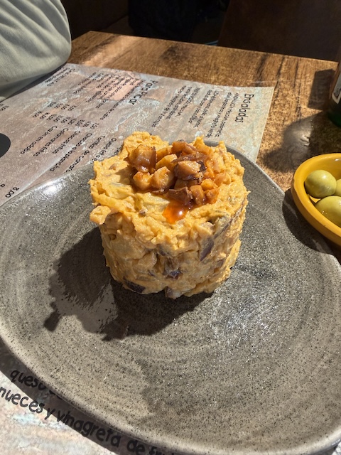 Su carta combina desayunos clásicos con tostadas y café, una amplia selección de tapas y raciones caseras y opciones más elaboradas para comer sin complicaciones. Entre las propuestas habituales se encuentran tostas variadas (como jamón ibérico o aguacate), tapitas de chocos o montaditos, ensaladas frescas y platos principales con carne o pescado, siempre con un enfoque en la cocina tradicional y productos de calidad provenientes de la zona.